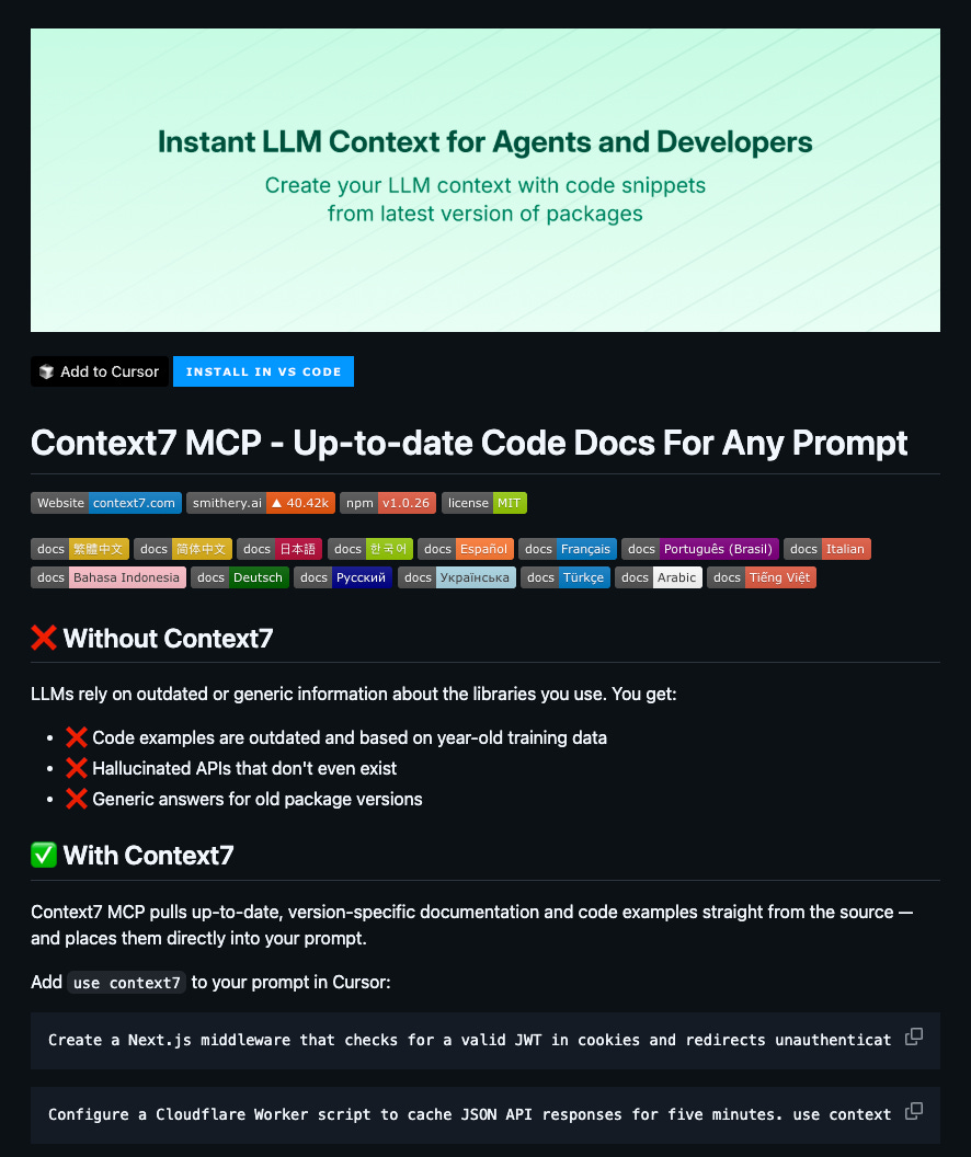 With Context7 agents don’t rely on stale knowledge from the model weights.